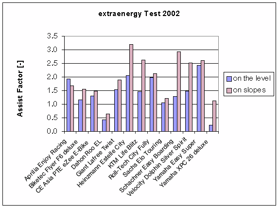 | 2002 | Speed on the level | Assist factor | 1.94 km/h/[-] | 0.24 |