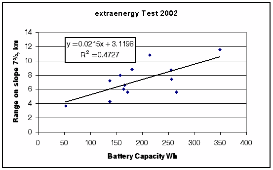 | 2001 | Speed on slope | Battery capacity | 0.04 km/h/Wh | 0.38 |